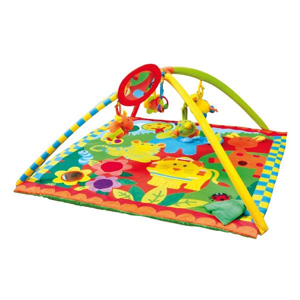 - Снабдено е с подвижни арки, към които са закрепени различни занимателни играчки, които стимулират развитието на моторните умения и сетивата на Вашето дете.