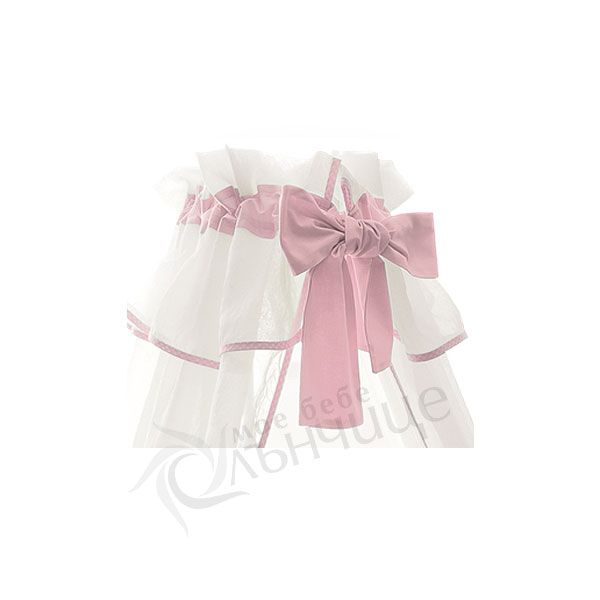 - Балдахин за детското легло изработен от нежни воали и декориран с цветни панделки и елементи.
