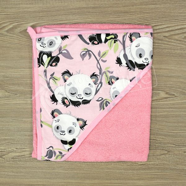 - Мека бебешка хавлия с качулка и сладки картинки на розови панди.