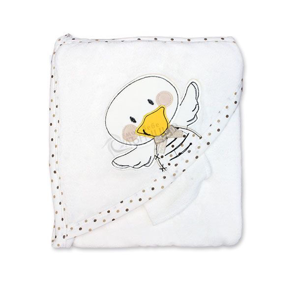 - Снабдена с качулка, която ще държи топло на детето след като банята е приключила.