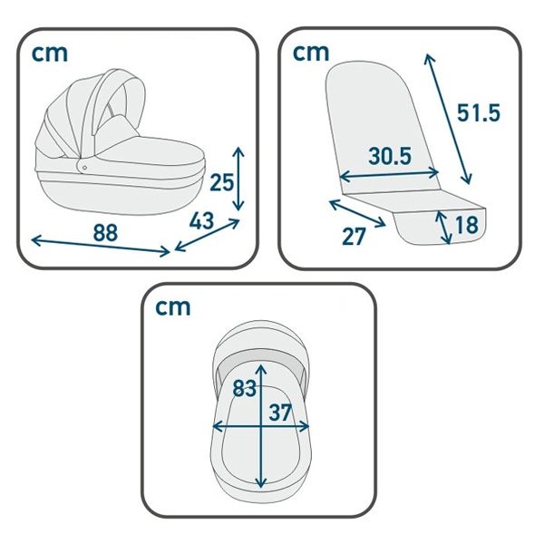 Възможност за монтиране на кошница за кола Maxi Cosi с допълнителни адаптери (не влизат в комплекта)