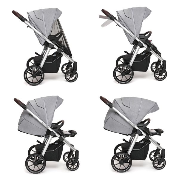BUENO е за любителите на дизайна и комфорта. За изработката на текстилните части са използвани само висококачествени и сертифицирани от OEKO-TEX материи. Специално бродираните нишки върху текстила са създадени от 100% дървесна целулоза - естествен и напълно безвреден материал. Бебешка количка 2в1, предназначена от новородено до 22 кг. благодарение на нейната функционалност и издръжливост.