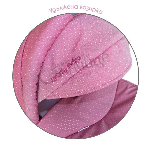 - Дълбок сенник с козирка и допълнително удължаване (посредством цип)