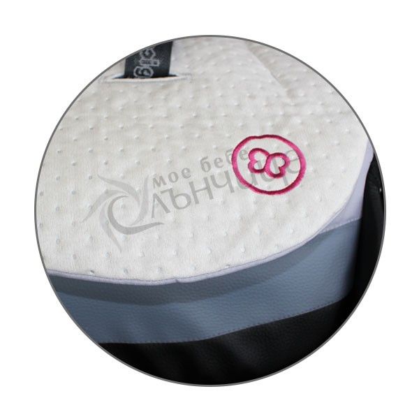 - Ергономичен подвижен матрак с две лица – лятна въздухопроводяща зона и зимна защитна зона от микрофибърен велур, който задържа телесната топлина без да позволява прегряване