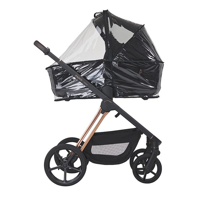 - В горната част на покривалото на коша за новородено има допълнително капаче, което се захваща стабилно с магнит и предпазва максимално бебето при дъжд и вятър. Освен това имате възможност за допълнително повдигане на капачето, така че да се застъпи с козирката, за максимална изолация.