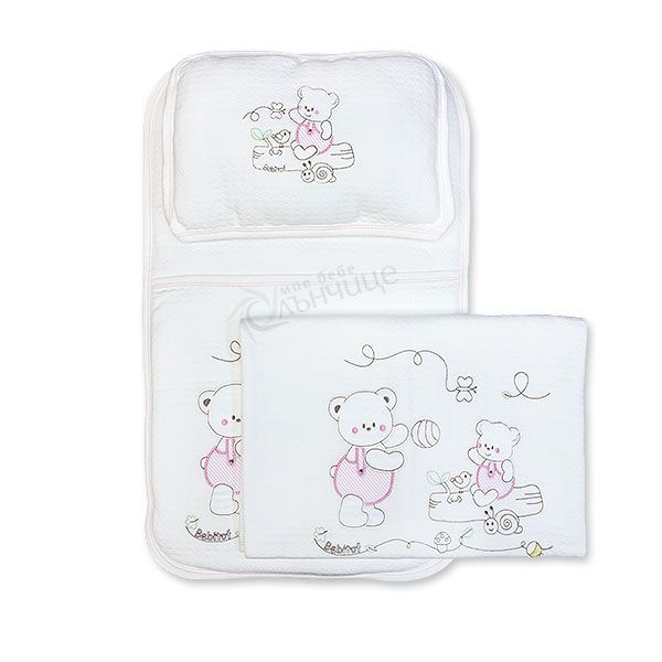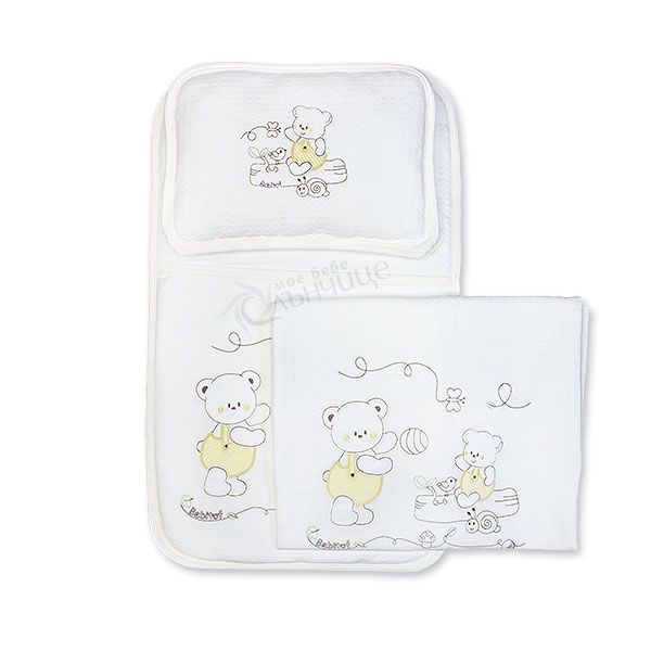 - Предлага се в нежни нюанси с весела бродерия на мечета.