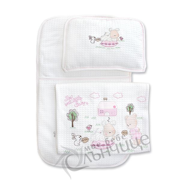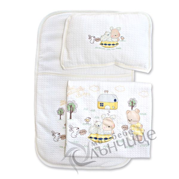 - Ведрата и жизнерадостна бродерия от богати цветове прави този комплект за количка много привлекателен