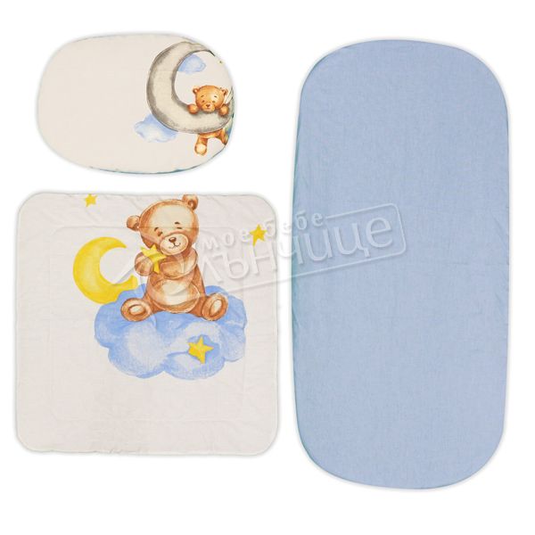 • Комплектът се състои от три части - мека двулицева завивка, възглавничка и памучно чаршафче.