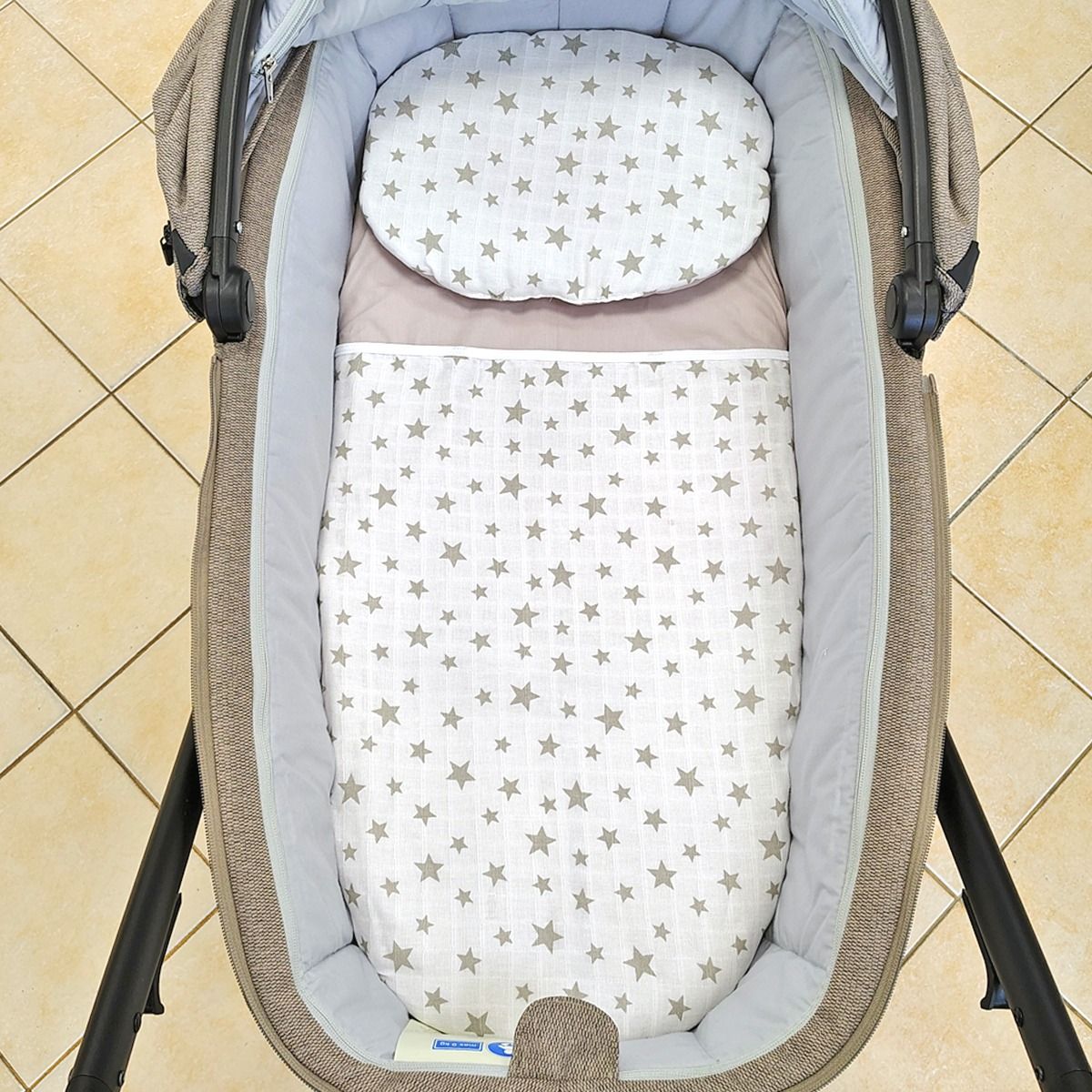 - 2 броя чаршаф с ластик - 78/38см (1 муселин и 1 ранфорс)