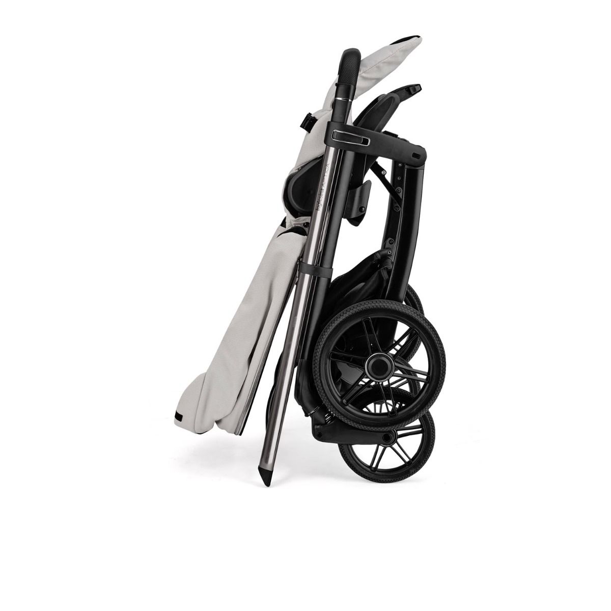 Inglesina Aptica се сгъва заедно със седалката в двете посоки и може да остане изправена.