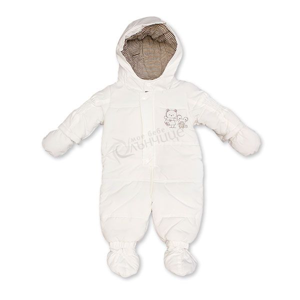 - Предлага се в бял цвят с нежна бродерия на мече и мишка, изработен със симпатично райе от вътрешната страна на качулката.