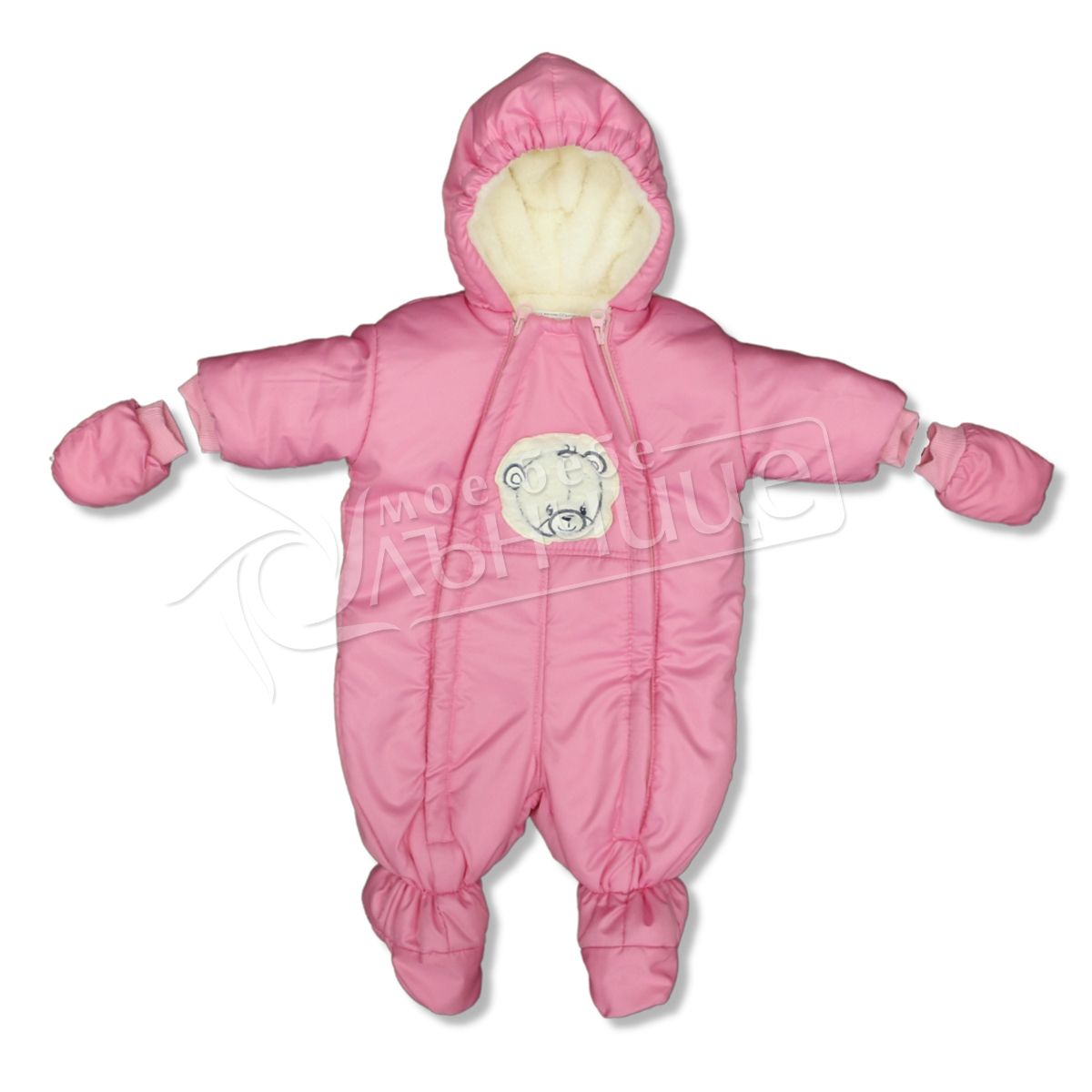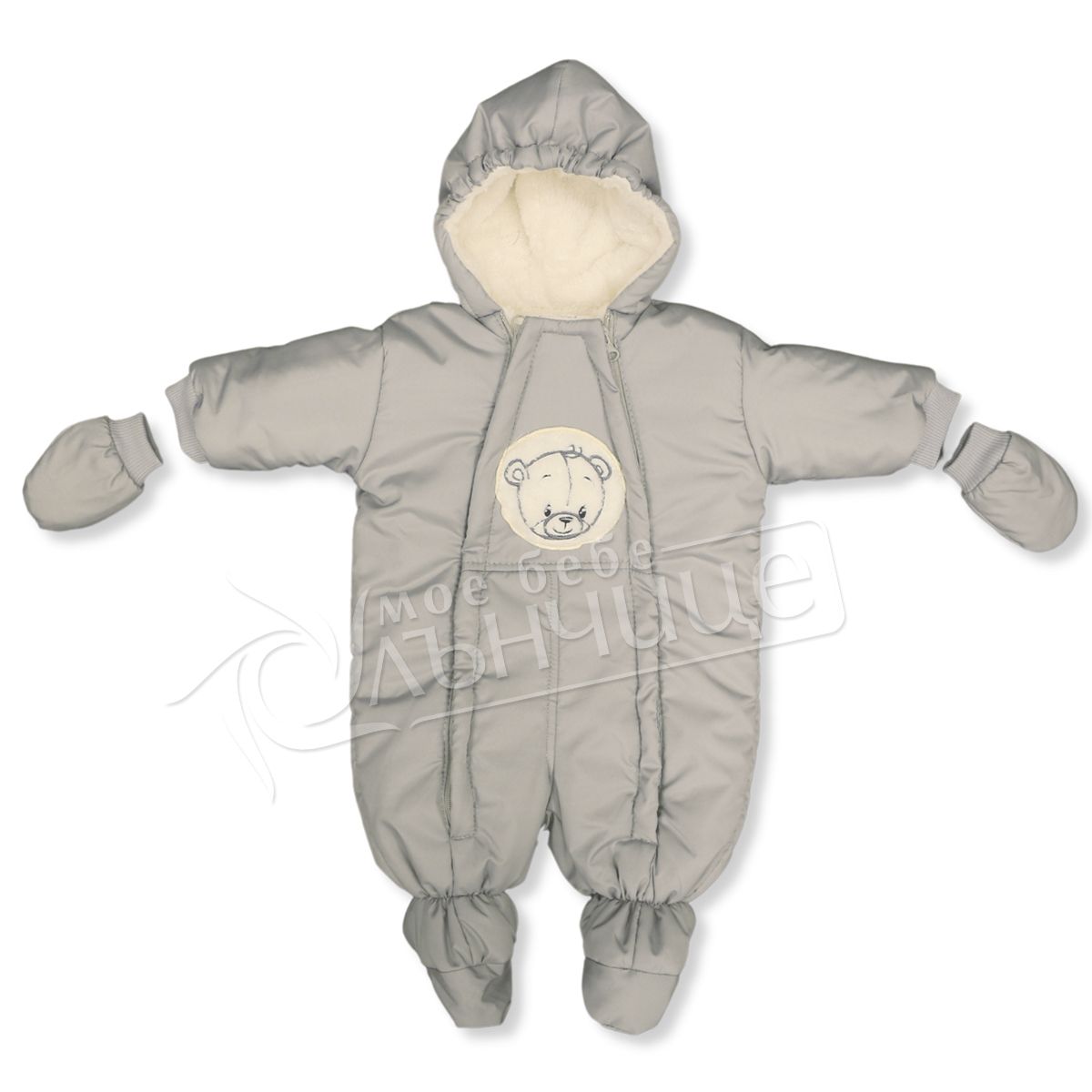 - Снабден с качулка и ципове в предната част за по-лесно преобличане на детето.