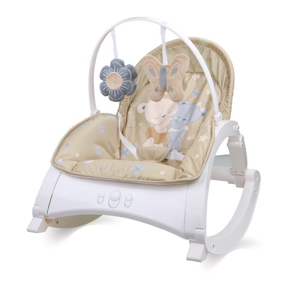 - Снабден е с вибриращ меганизъм на 2 степени и приятни мелодии, които забавляват, успокояват и помагат за приспиването на детето.