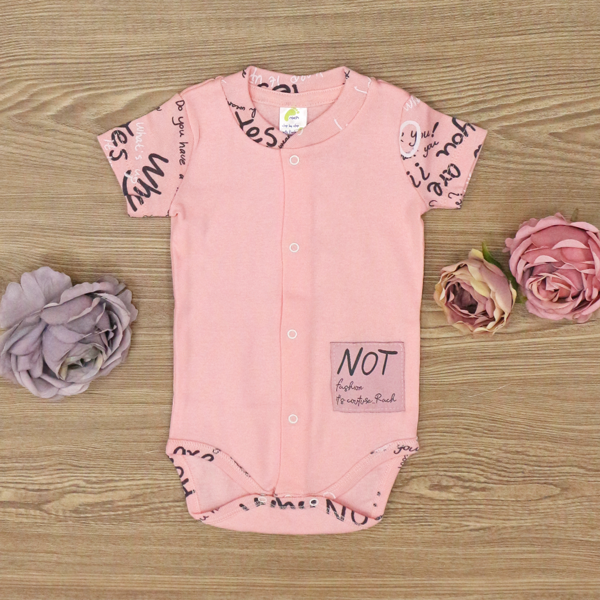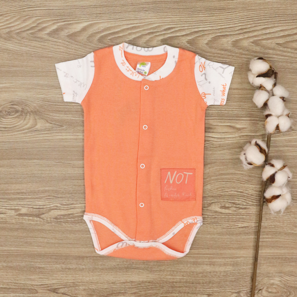 - Бебешко боди с къс ръкав, създадено от 100% памучно трико (рипс).