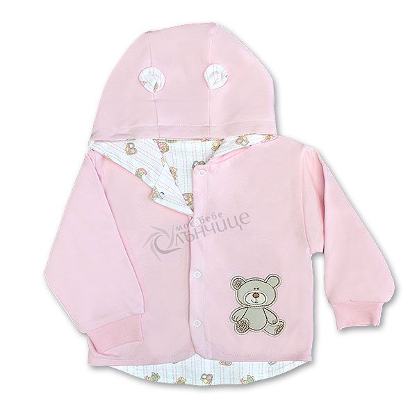 - Симпатичен и деликатен дизайн в розов цвят с добавени сладки ушички на качулката.