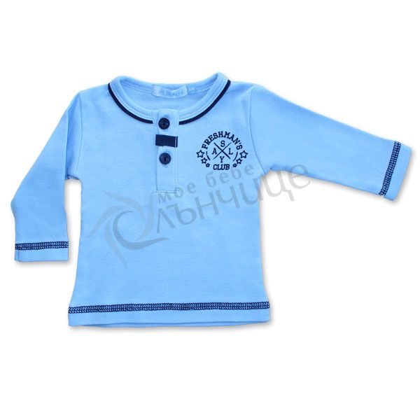 - Блузката е с дълъг ръкав и две копчета в предната част.