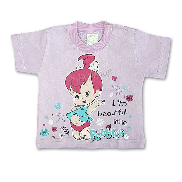 - Предлага се в цветове розов и лилав със симпатичната апликация на бебе Pebbles.