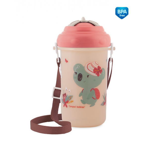 - Чашата е цветна и изключително практична, снабдена със сламка, която да улесни пиенето без риск от разливане на течност.