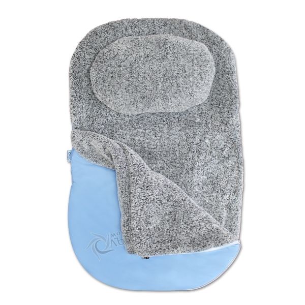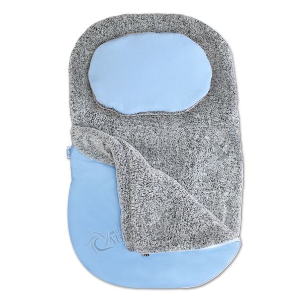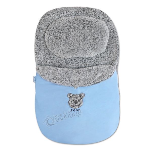 - Комплектът включва две части - топло чувалче с цип за лесно откопчаване и поставяне на бебето вътре и мека двулицева възглавничка.