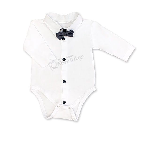 - Бодито предлага копчета отпред и при крачетата, сладка якичка с любопитна папионка за добро настроение.