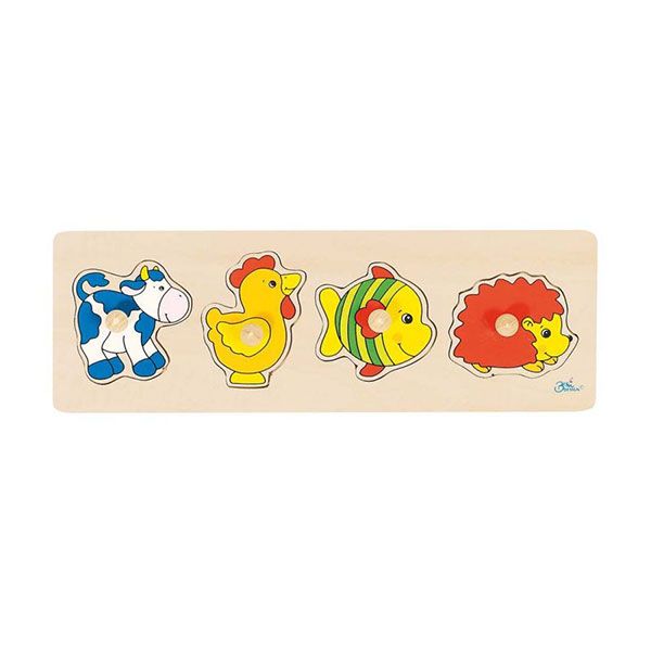Дървен пъзел с дръжки Крава и таралеж - GOKI