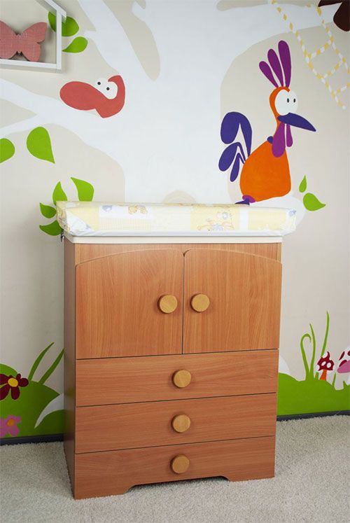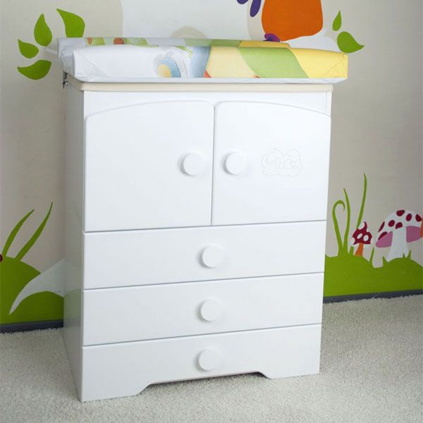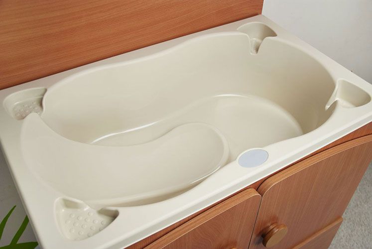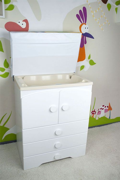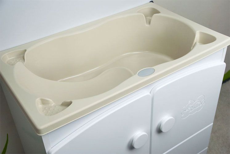 - Шкафа предлага в комплект вана и повивалник. В горната част е поставена вградената ваничка, която е снабдена с две отделения за различни възрасти.