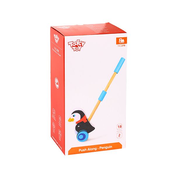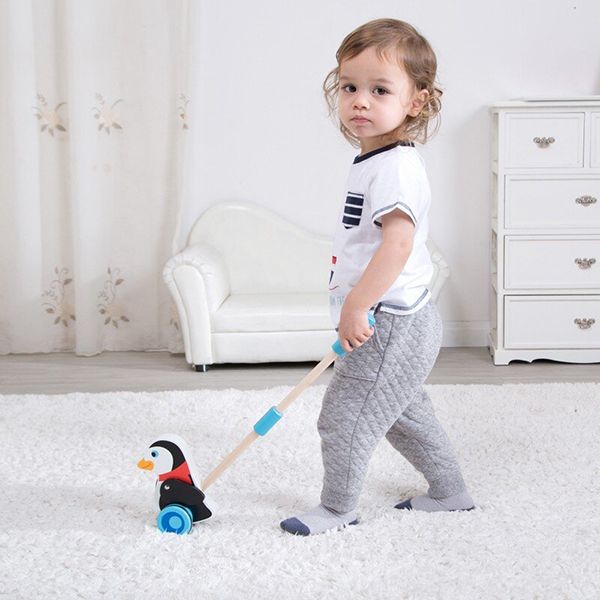 - Зарадвайте своето мъниче с това дървено пингвинче с дръжка за бутане, която ще го насърчи да направи първите си стъпки.