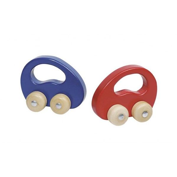- Дървена играчка във формата на количка с четири движещи се колела