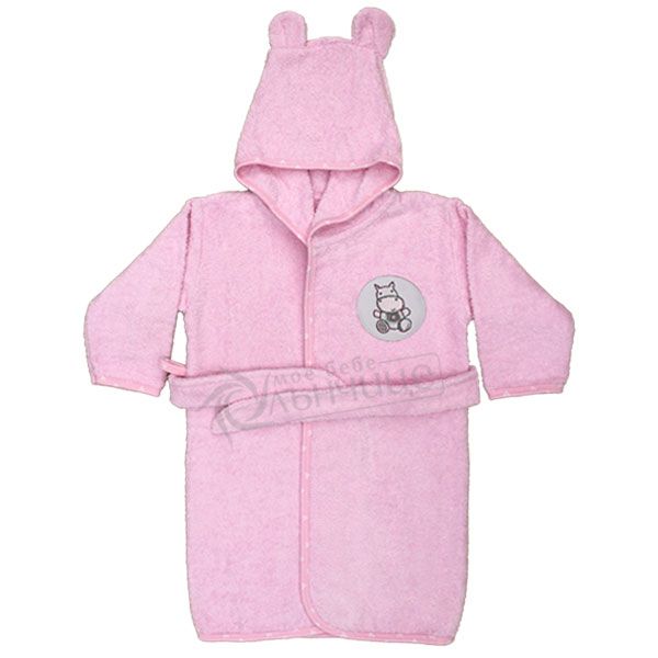 - Халата е със качулка с ушички и колан за връзване, който се поставя на гайки