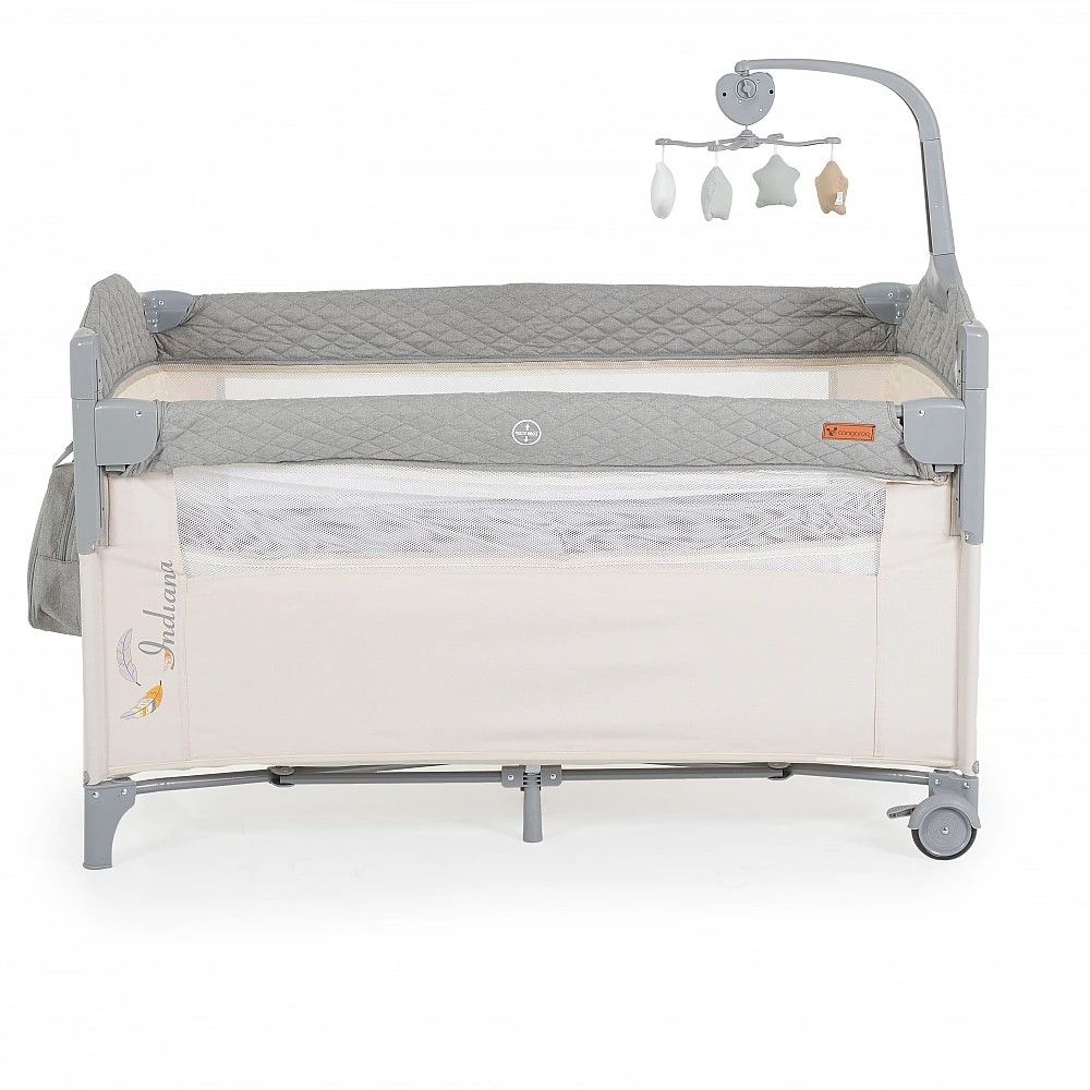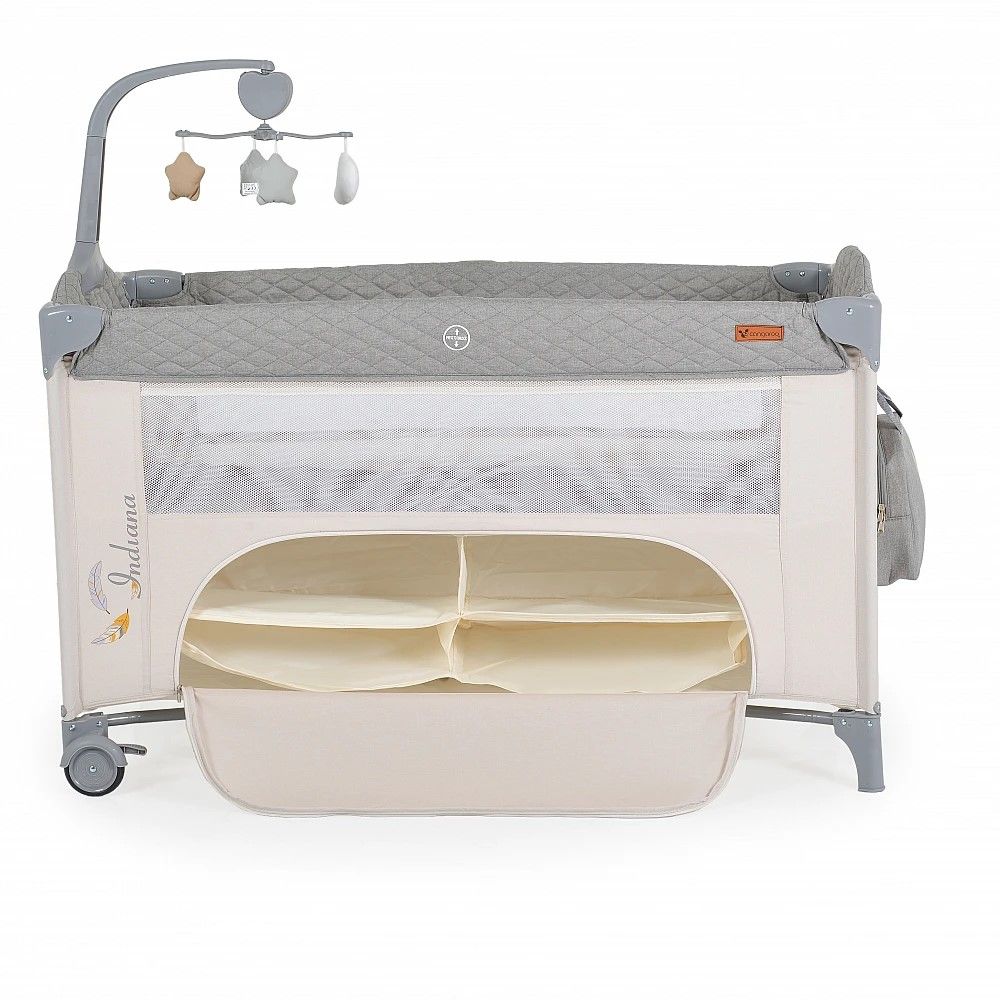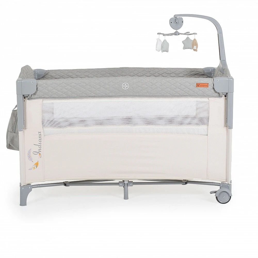 Кошара за бебе Индиана сив разполага с 2 нива за матрака, като второто може да бъде премахнато лесно и бързо с помощта на цип. Ползването на кошарата може да стане от раждането на Вашето бебе до достигане на максимално тегло от 14 кг.
