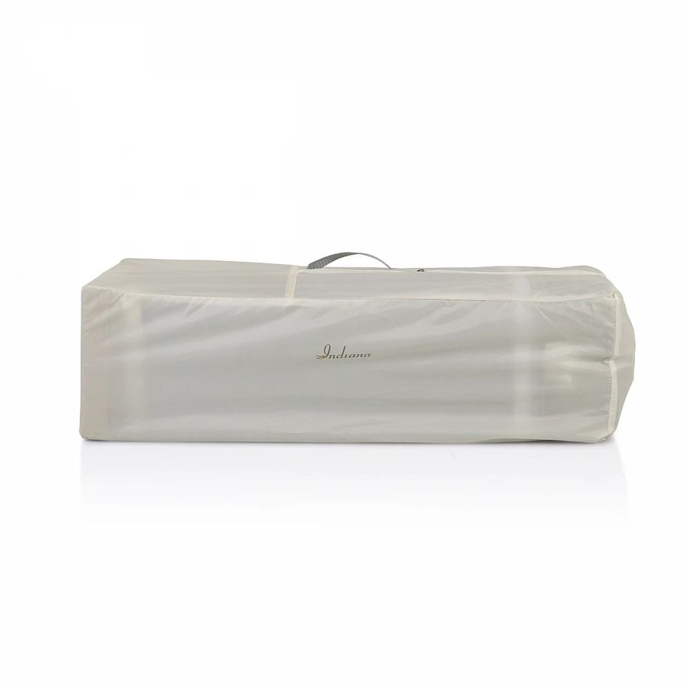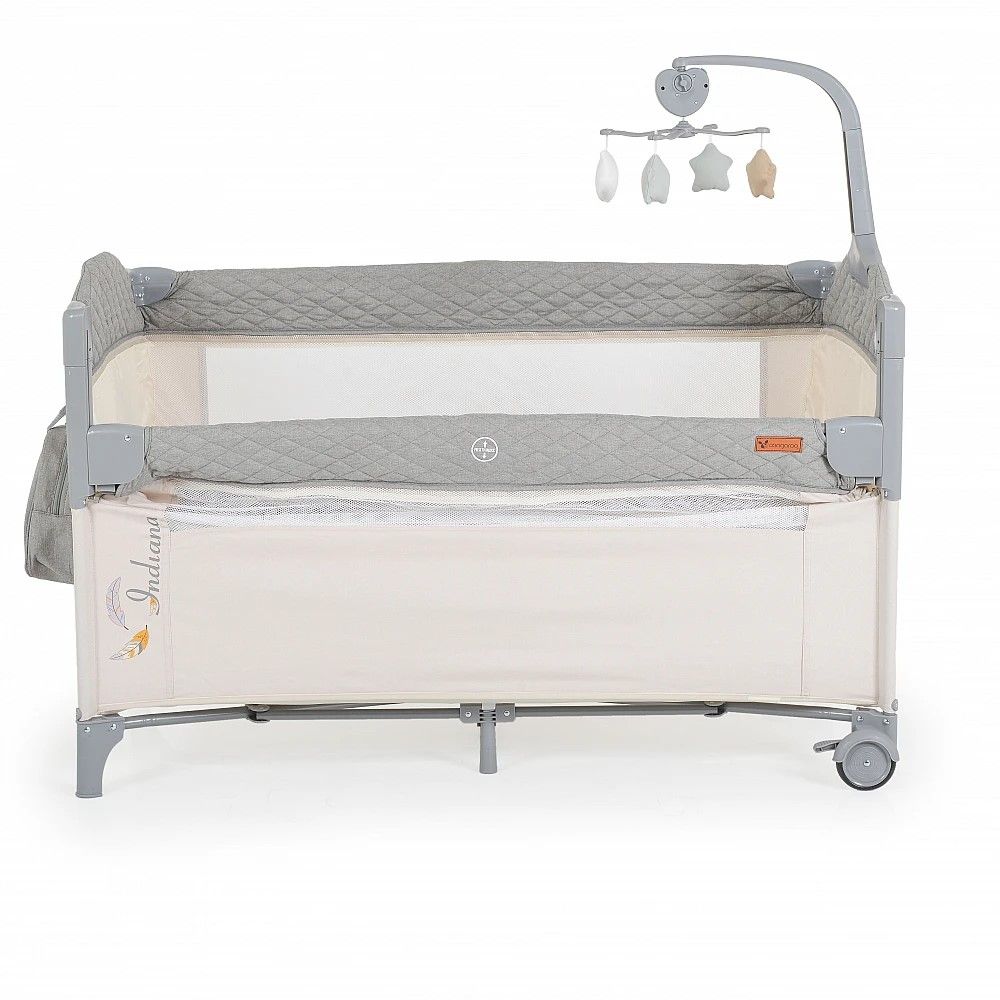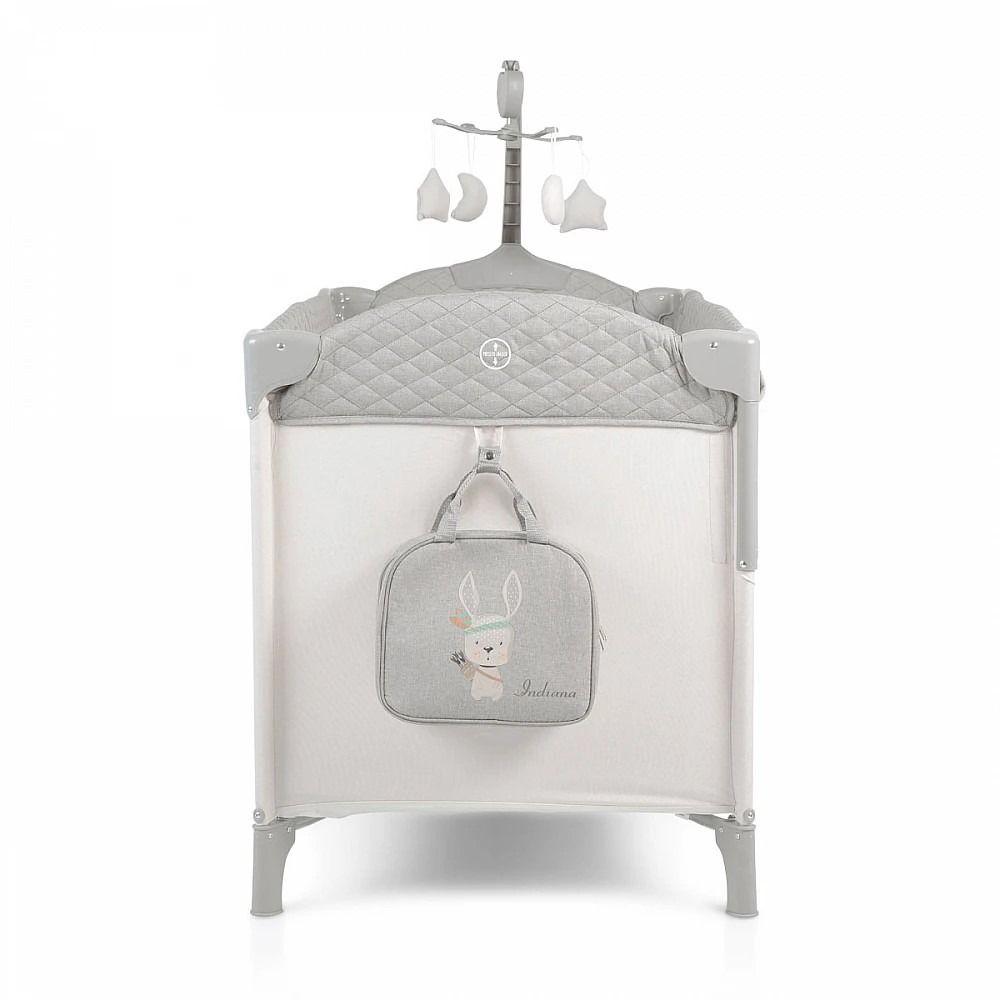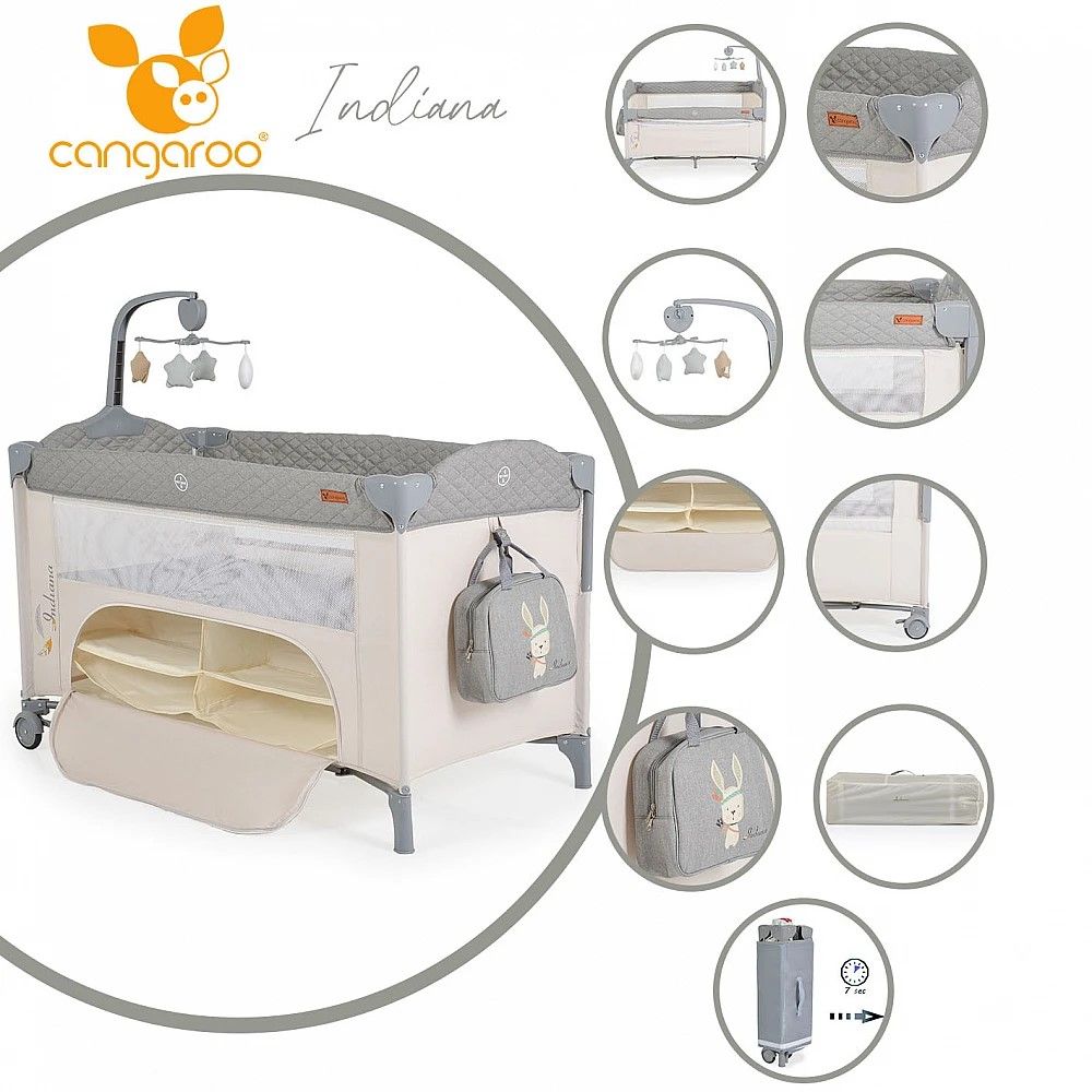 Кошара за бебе Индиана сив разполага с 2 нива за матрака, като второто може да бъде премахнато лесно и бързо с помощта на цип. Ползването на кошарата може да стане от раждането на Вашето бебе до достигане на максимално тегло от 14 кг.