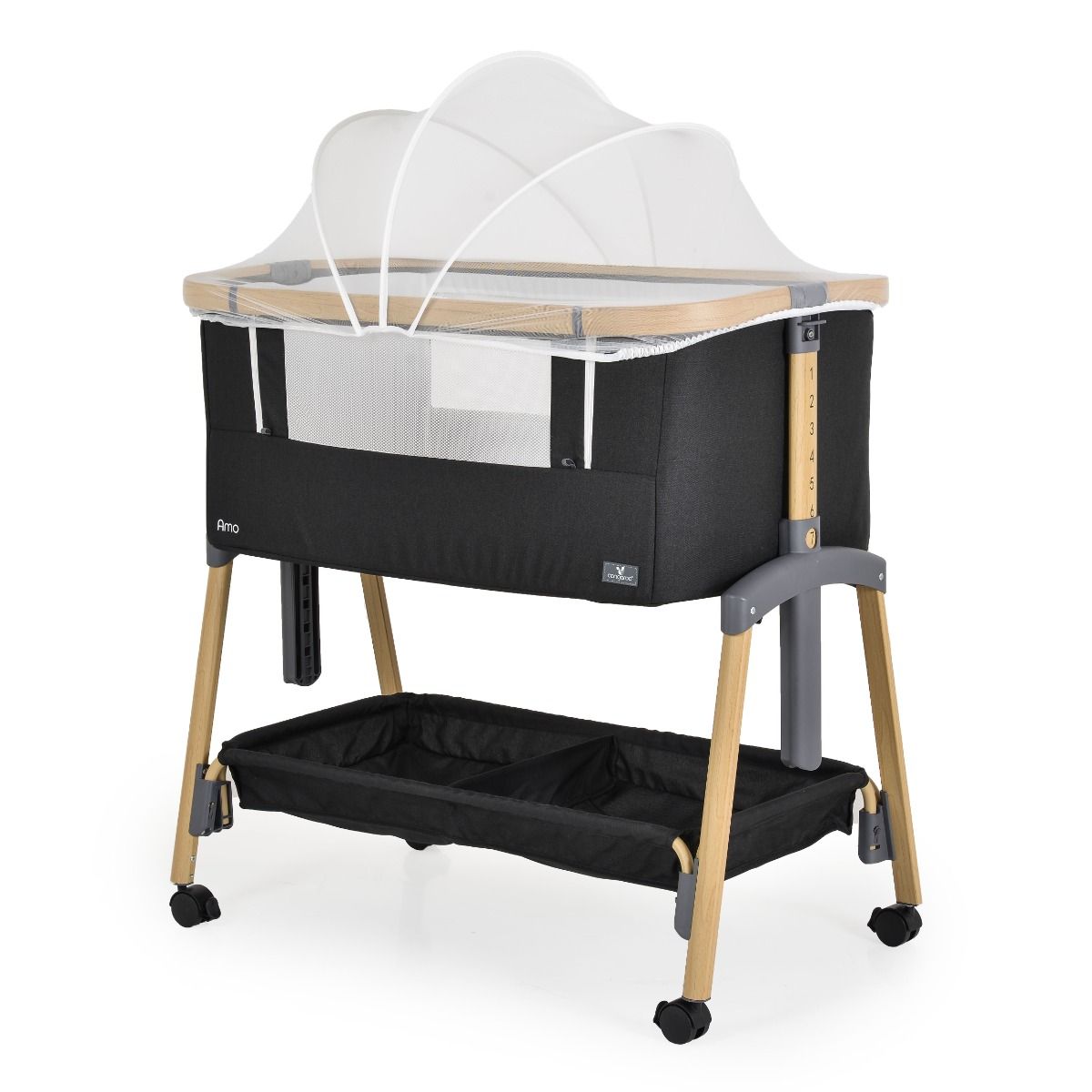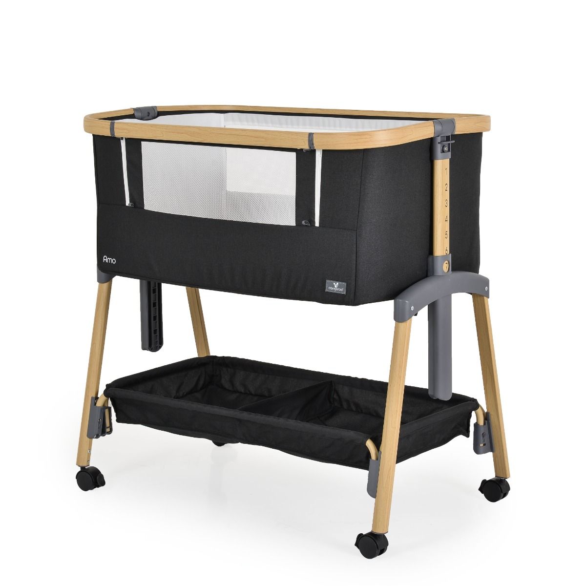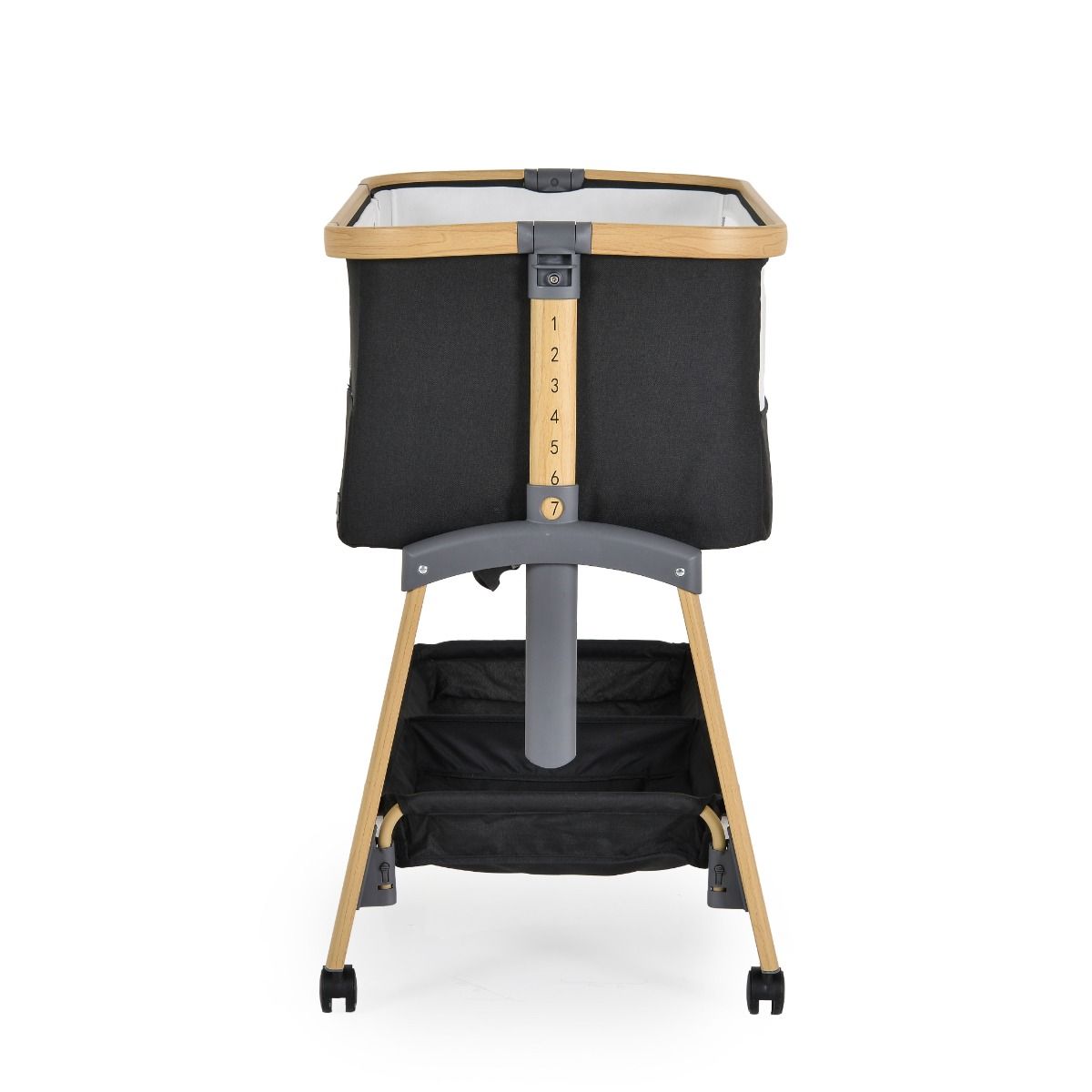 - Леглото предлага възможност за регулиране на височината в 7 различни позиции. Тази опция позволява на родителите да се адаптират към нуждите на бебето в различния етап от неговото израстване.