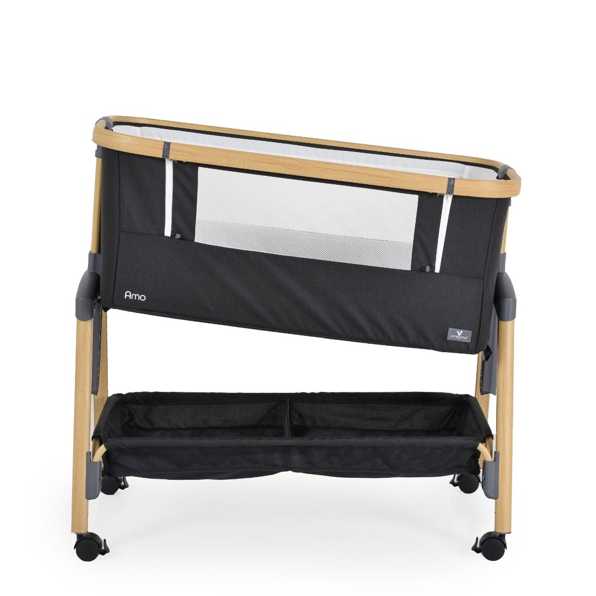 - Многофункционалната бебешка кошара предлага две основни конфигурации на употреба. Може да се използва както като самостоятелно легло с вдигната преграда, така и да се прикрепи към родителското. По този начин се осигурява близък контакт с бебето и допринася за допълнителен комфорт за майката.