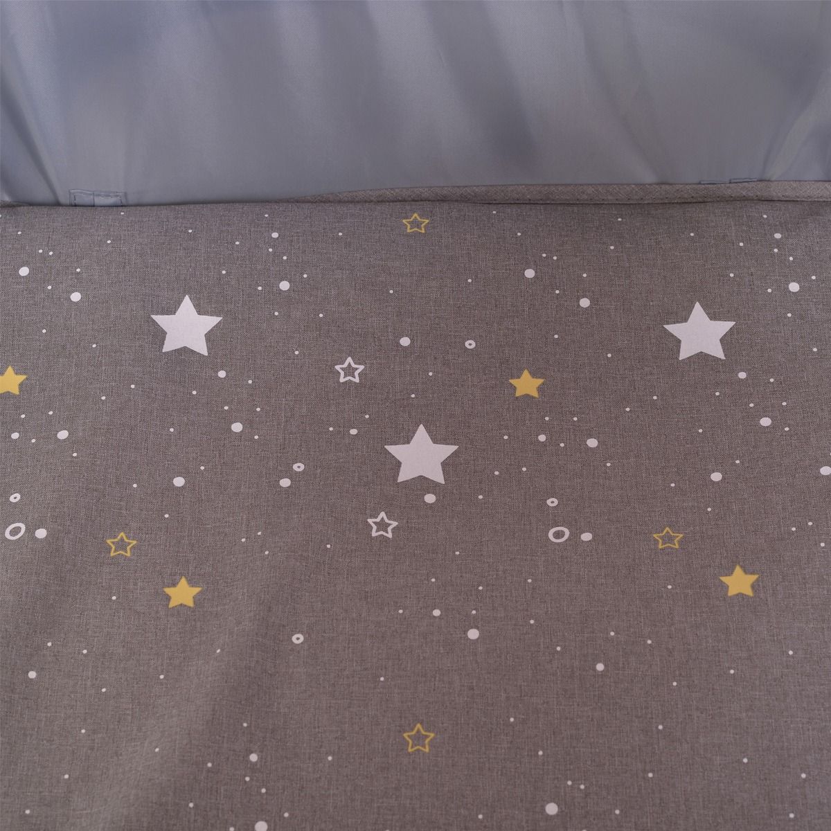 - Изработена от висококачествен ленен плат, кошарата предлага чаровен дизайн с приказни мотиви, създавайки уютна атмосфера за Вашето дете.