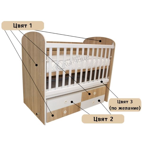 - Леглото можете да поръчате в комбинация от цветове по ваше желание. Цветовете се потвърждават в телефонен разговор.