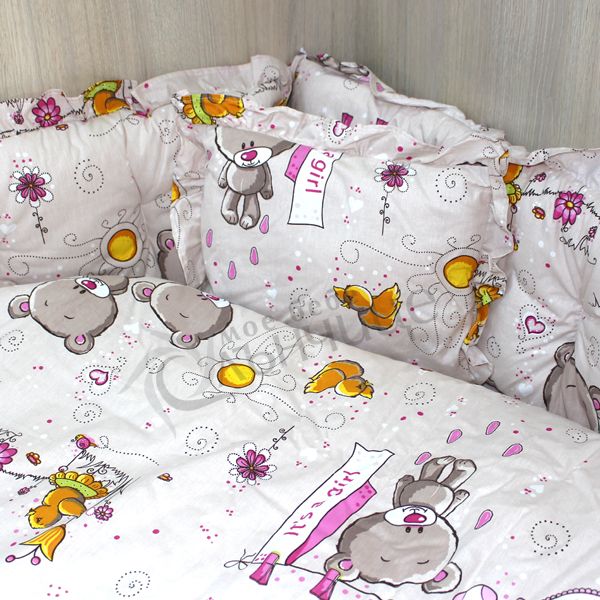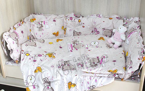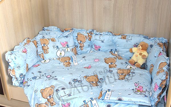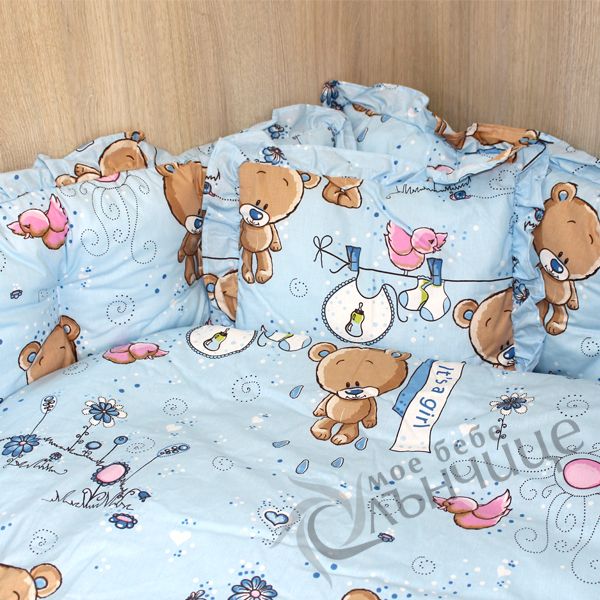 - Спален комплект за бебе изработен от 100% висококачествен памук. Изключително мек и нежен на допир, което го прави много подходящ за новородено. Материалът е ранфорс (лукс хасе), пълнеж на завивката и обиколниците от силиконова вата. Комплекта се предлага в няколко свежи цветови варианта с весели и закачливи щампи.