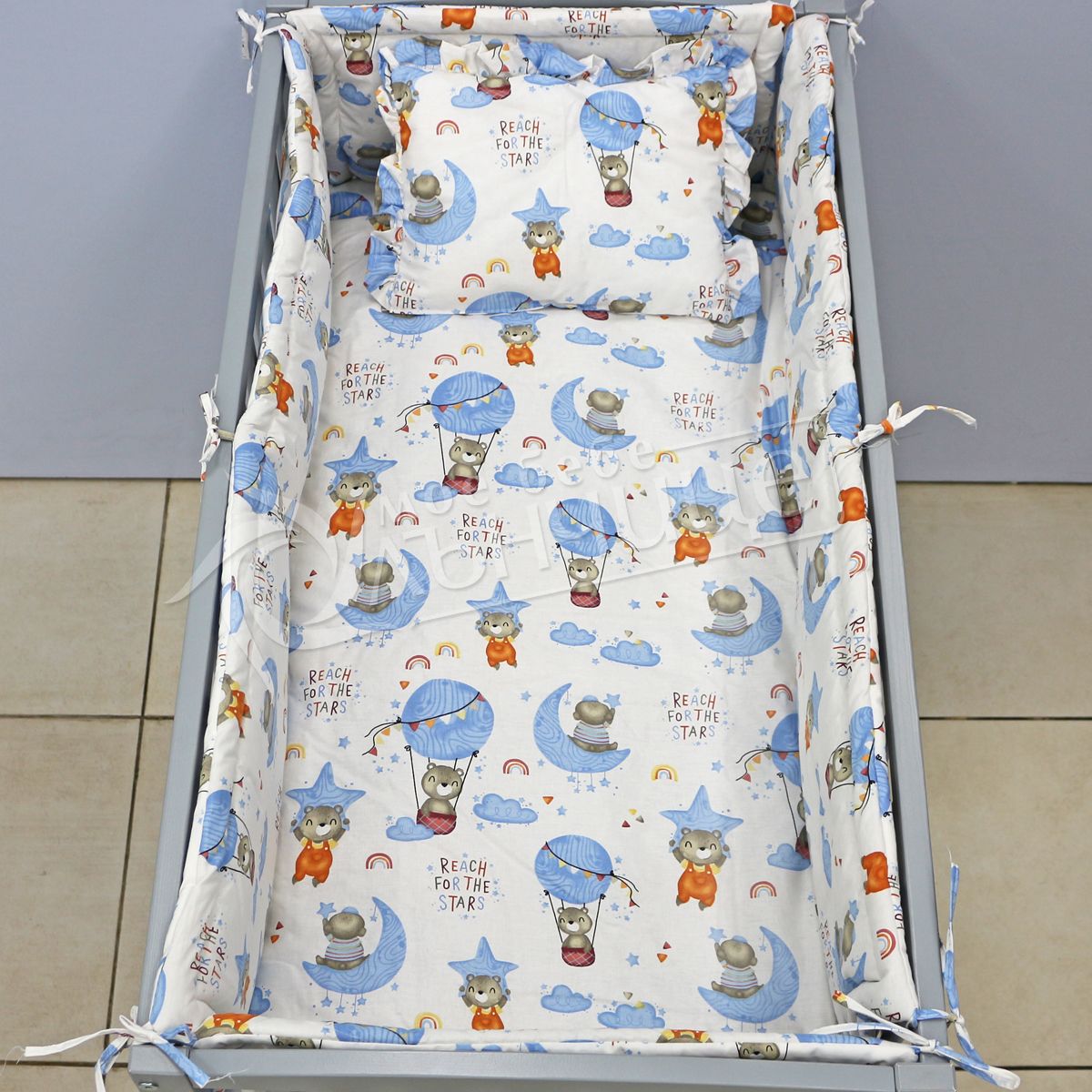 - Спалният комплект е изключително приятен на допир и осигурява необходимото удобство и уют за спокойния сън на Вашето бебе.
