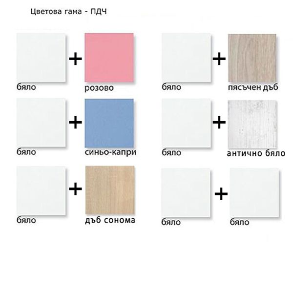 - Комплектът включва скрин за преповиване с три чекмеджета и ракла и юношеско легло с две чекмеджета.