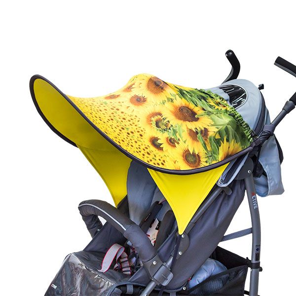 Дизайнерски двулицев сенник за бебешка количка с UV защита - Слънчогледи