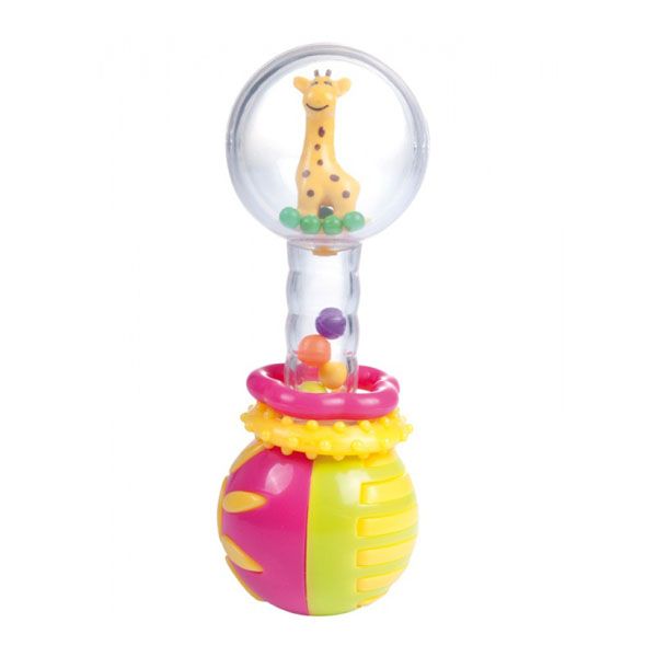 - Ярките цветове, в които е изработена дрънкалката стимулират въображението.