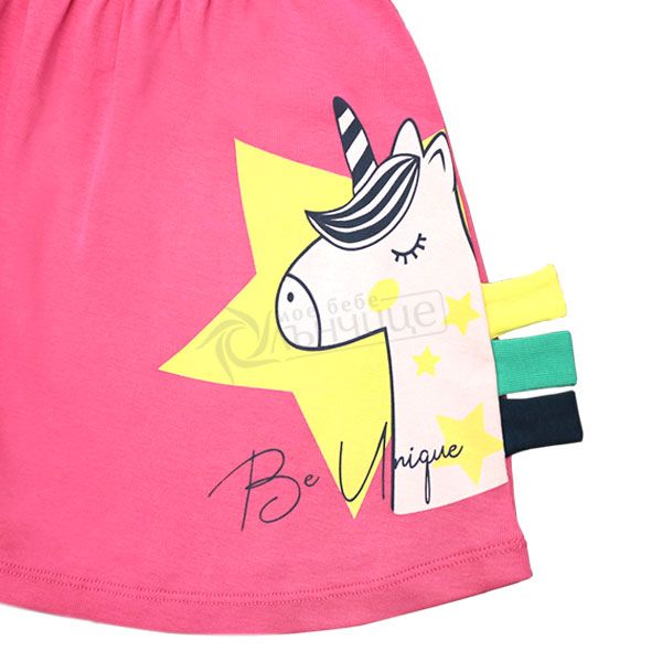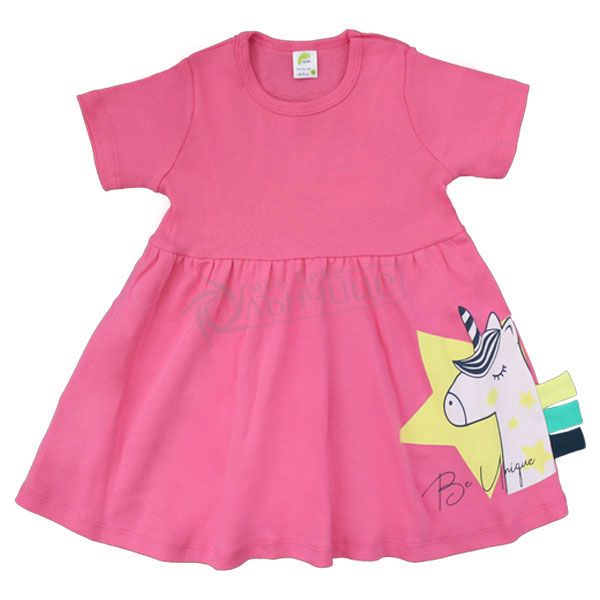 - Памучна, модерна бебешка рокля с къс ръкав, в приятен розов цвят