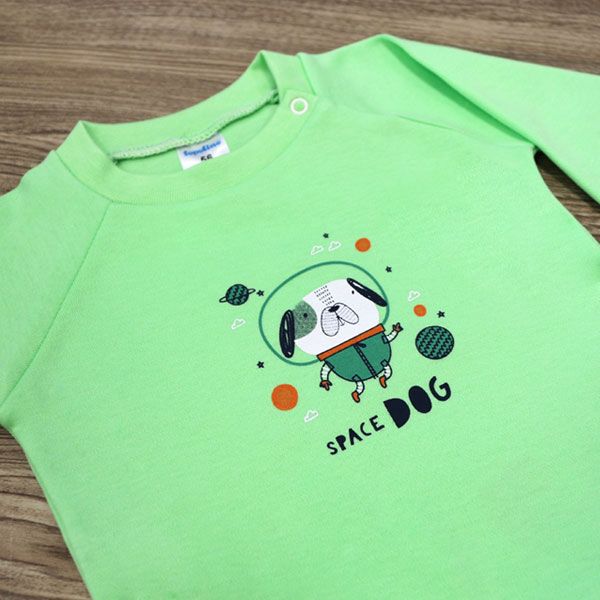 - Комплектът се състои от блузка с цветен, весел принт и панталонче с широк ластик за повече комфорт