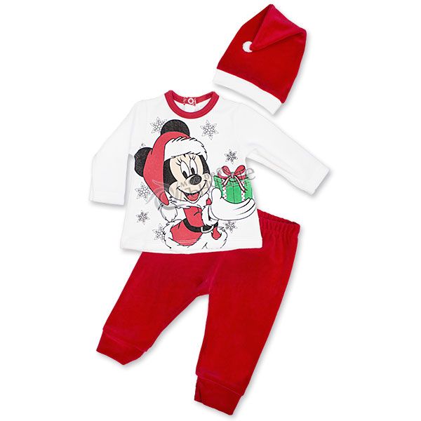 - Включва блузка с дълъг ръкав и копчета тик-так по протежение на гръбчето, панталон с ластик в горната част и коледна шапка.
