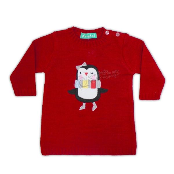 - Пуловерът е с дълъг ръкав, изработен в характерните за декемврийските празници цветове бяло и червено.