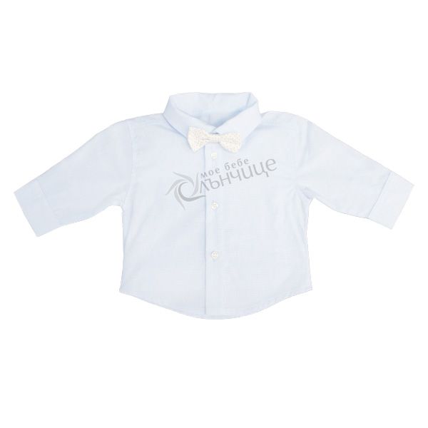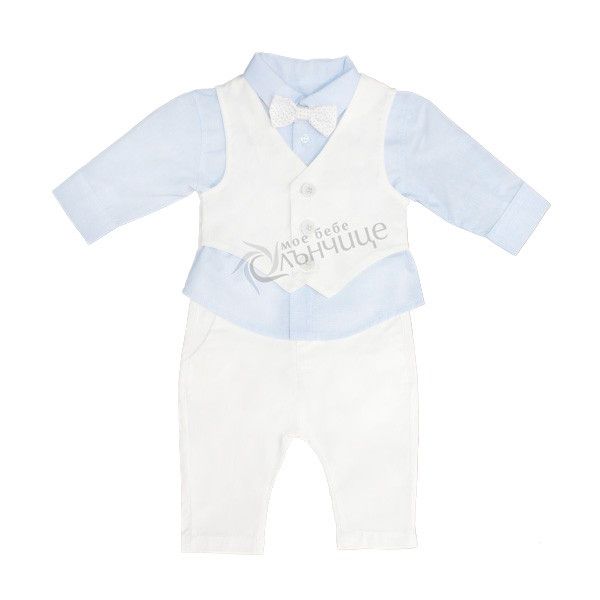 - Комплектът включва елек, риза с дълъг ръкав, папийонка и панталон.
