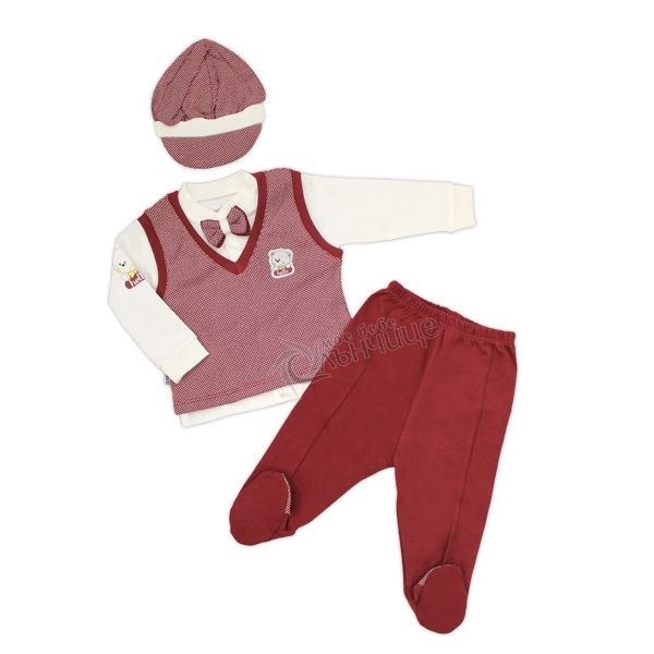 - Комплектът е създаден от нежно памучно трико, съобразено с деликатната бебешката кожа.