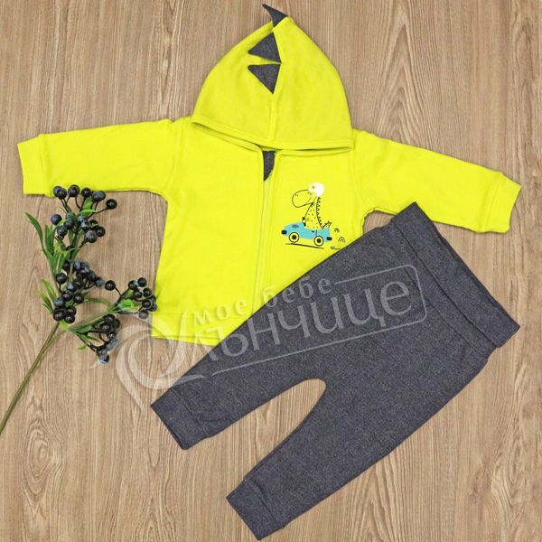 - Комфортен комплект със суитшърт с дълъг ръкав и панталонче.