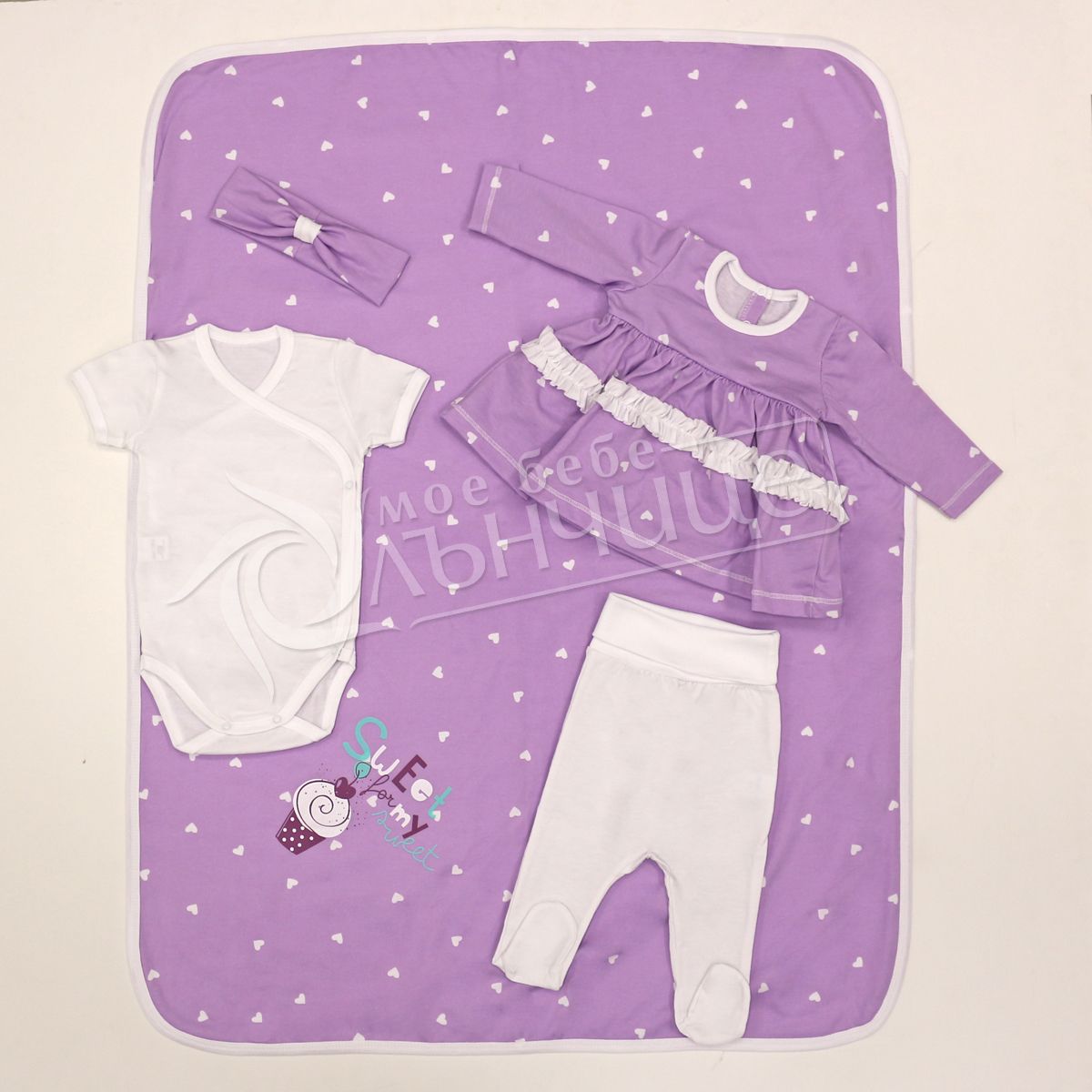- Двулицева пелена със сладки сърчица от едната страна.