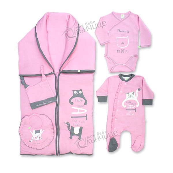- Комплект за изписване на новородено с порт бебе, изработен от 100% памучно трико.