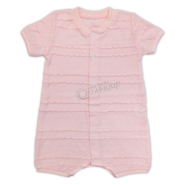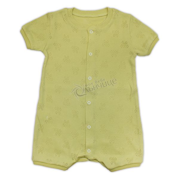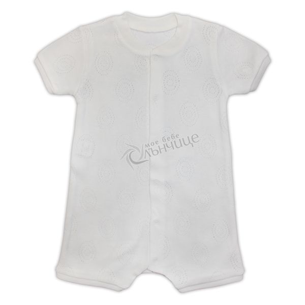 - Лятно гащеризонче с къс ръкав и крачол, създадено от изключително фино 100% памучно трико (ажур).